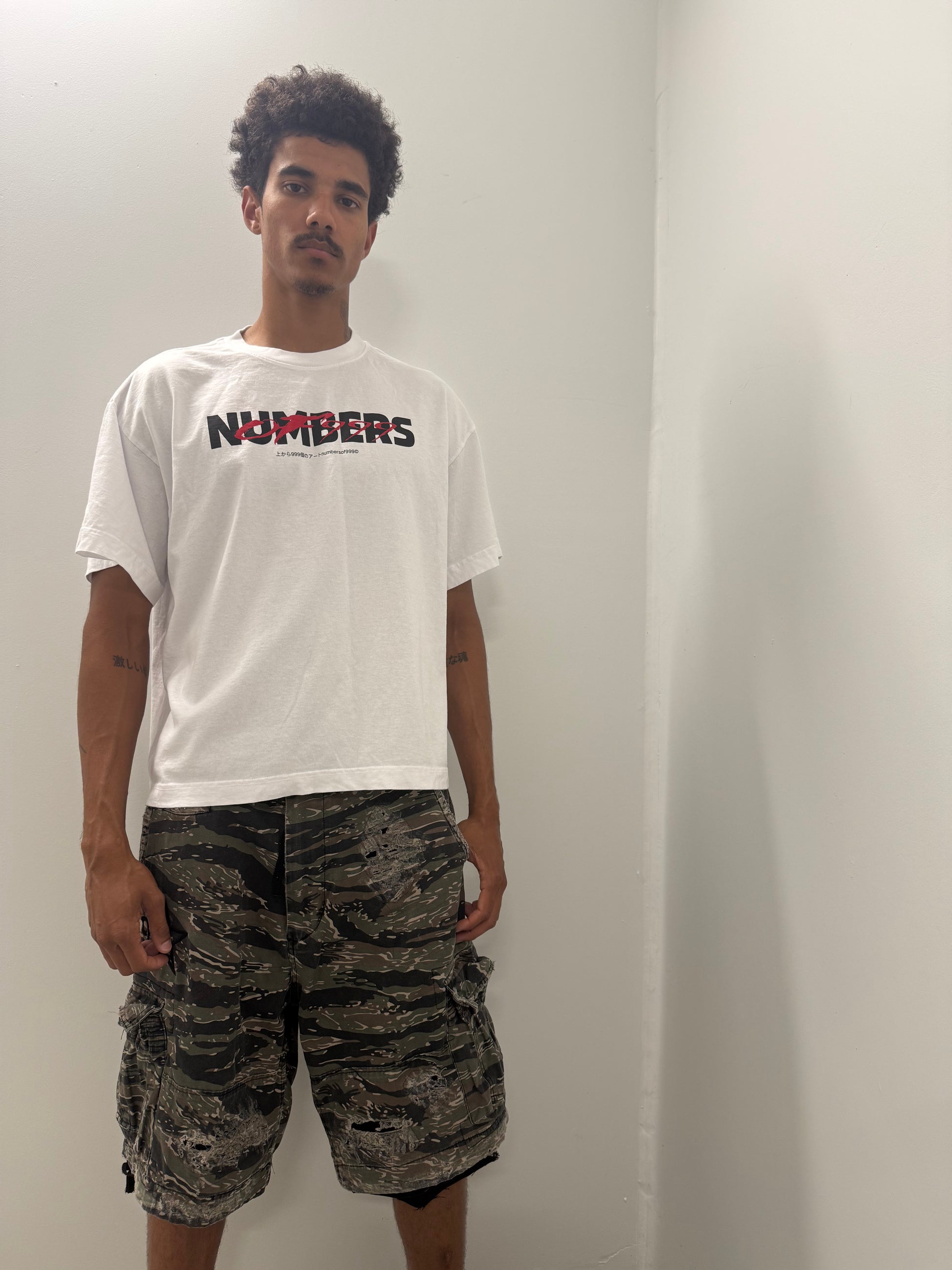 The Numbers Stacked Logo tee from NUMBERS OF 999 is cut in a boxy, cropped fit from heavyweight cotton.